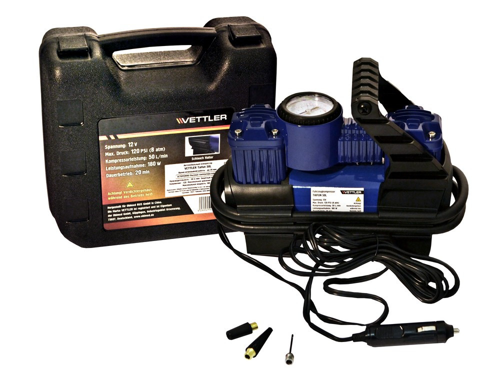 Компрессор 8атм, 50л/мин, 12В (2 поршня 30мм, метал.корпус) Тайфун
