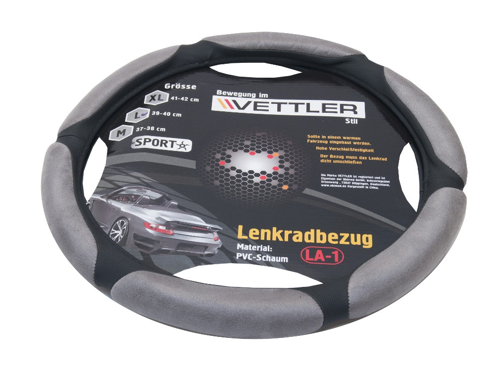 Оплетка на руль L 39-40 см. (ВАЗ 2101-2107, Волга) PVC (6 подушек) Серый