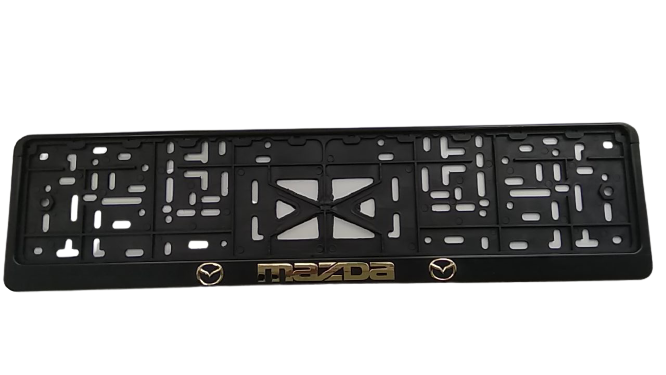 Рамка номерного знака с защелкой золото с надписью "MAZDA" рельеф